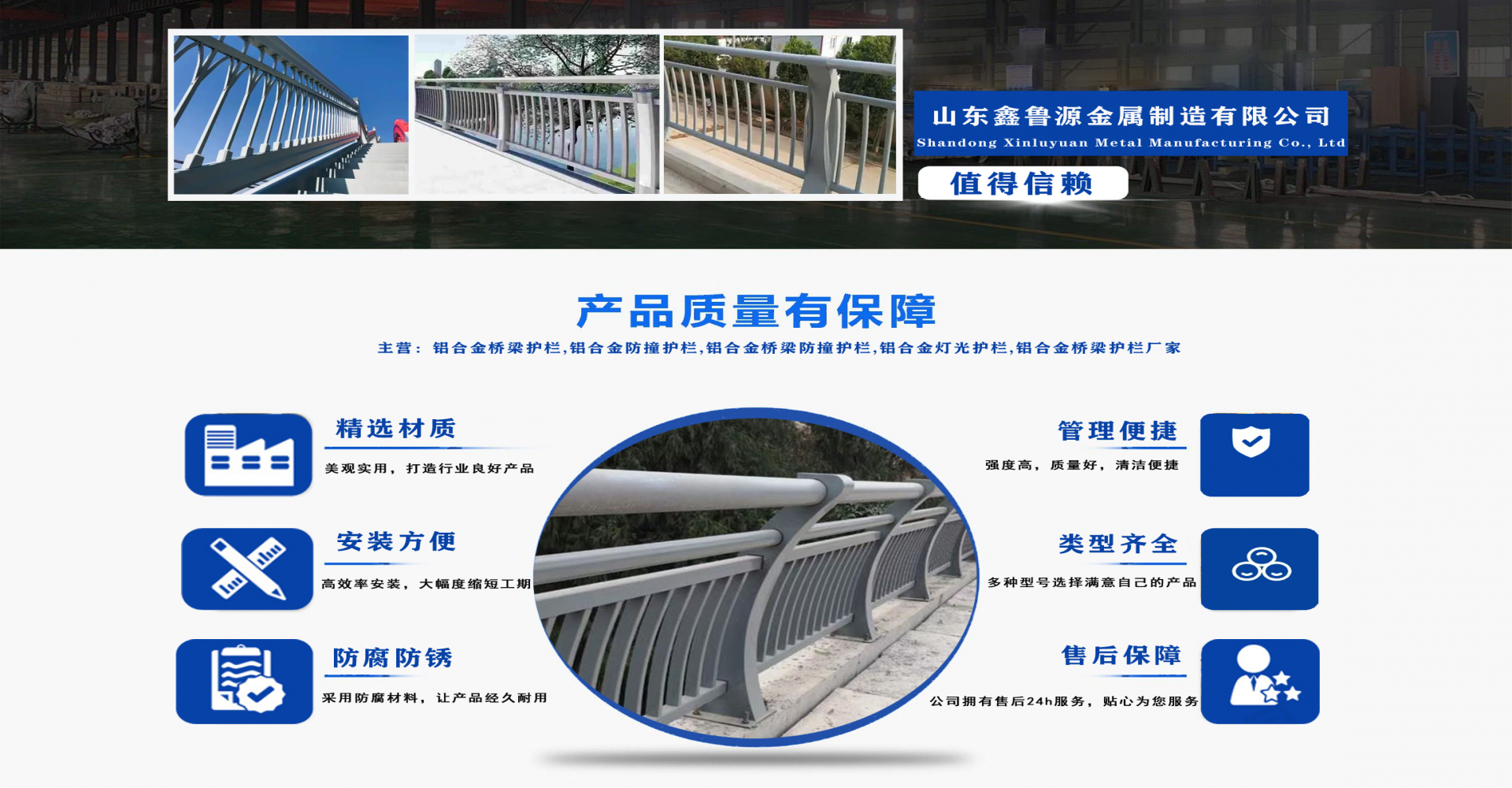 山東鑫魯源金屬制造有限公司主要經(jīng)營(yíng):鋁合金橋梁護(hù)欄,鋁合金防撞護(hù)欄,鋁合金橋梁防撞護(hù)欄,鋁合金燈光護(hù)欄,不鋁合金橋梁護(hù)欄廠家,環(huán)波梁橋梁護(hù)欄,環(huán)波梁防撞護(hù)欄。質(zhì)量可靠、經(jīng)濟(jì)實(shí)用的顯著特點(diǎn)。公司為客戶(hù)提供可靠售后保障,堅(jiān)持“以品質(zhì)立足、服務(wù)求發(fā)展”,愿與各界朋友精誠(chéng)合作、攜手發(fā)展! 服務(wù)優(yōu)勢(shì):真誠(chéng)的服務(wù)理念、完善的服務(wù)體系。公司專(zhuān)業(yè)力量充足;工程案例眾多、從業(yè)經(jīng)驗(yàn)豐富;公司以可靠質(zhì)量的產(chǎn)品,合理的價(jià)格,完善的售后服務(wù),能夠滿(mǎn)足市場(chǎng)各個(gè)企業(yè)的需求。 企業(yè)精神:執(zhí)著追求 持續(xù)創(chuàng)新執(zhí)著追求,就是堅(jiān)持不懈、堅(jiān)定從容,專(zhuān)注于自己的事業(yè),把能做的事情做好,不斷克服困難、把握機(jī)遇,贏得未來(lái)。 持續(xù)創(chuàng)新,就是生命不息、創(chuàng)新不止,通過(guò)持續(xù)實(shí)施技術(shù)創(chuàng)新、管理創(chuàng)新、市場(chǎng)創(chuàng)新,獲取持續(xù)的競(jìng)爭(zhēng)優(yōu)勢(shì)。...